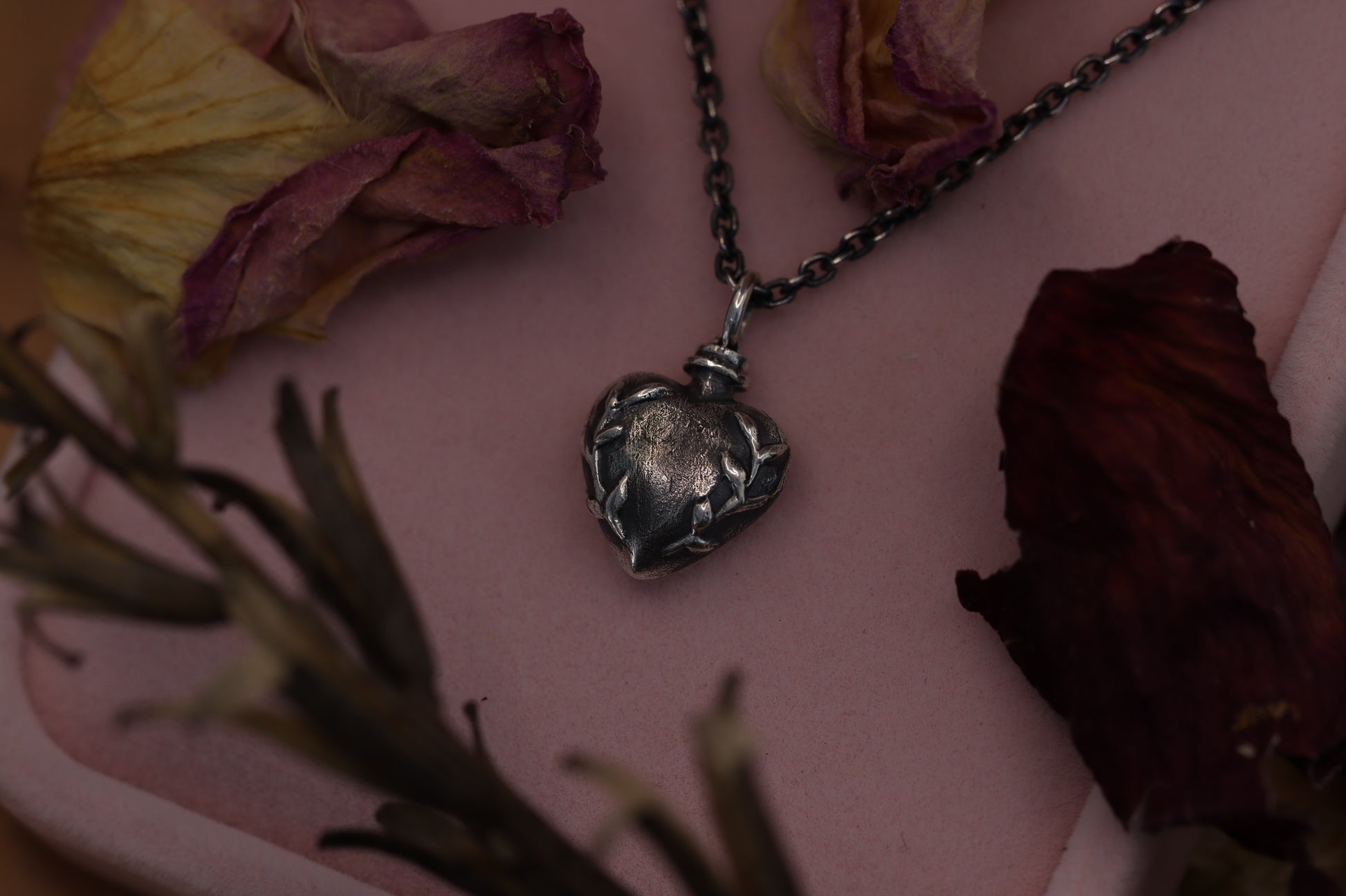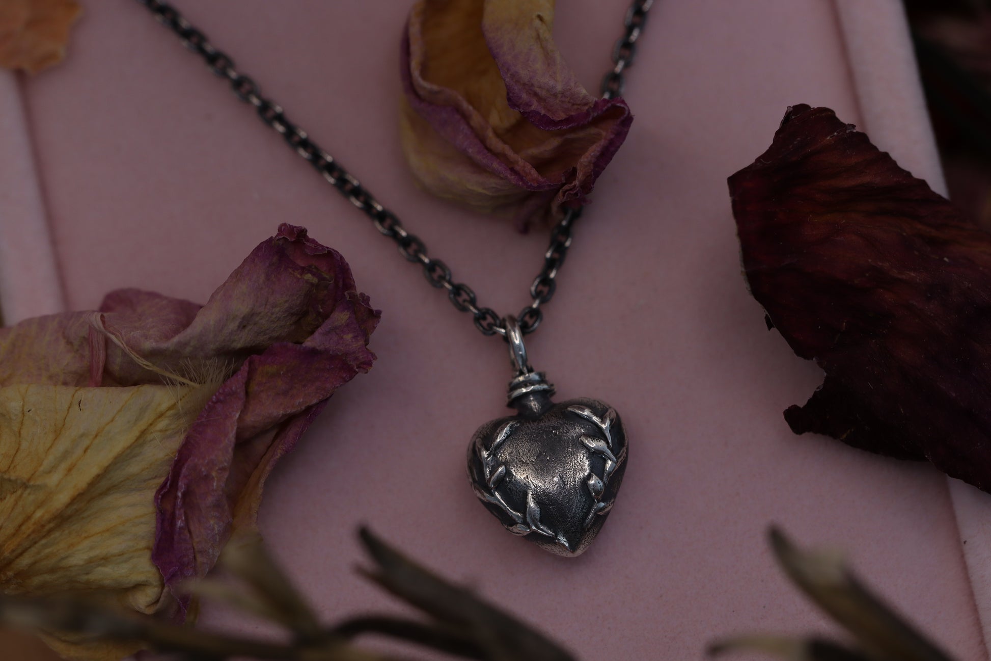 Hand-carved in sterling silver, each creation carries a piece of this enchanted realm. The Secret Key Necklace promises to open unseen doors, the Secret Locket guards the most precious of keepsakes, the Love Potion Pendant holds a spell of devotion, and the Heart Rings intertwine love and destiny in delicate, sculpted silver. Together, they form a collection steeped in wonder-where love is a riddle, and the key to its secret is yours to hold.