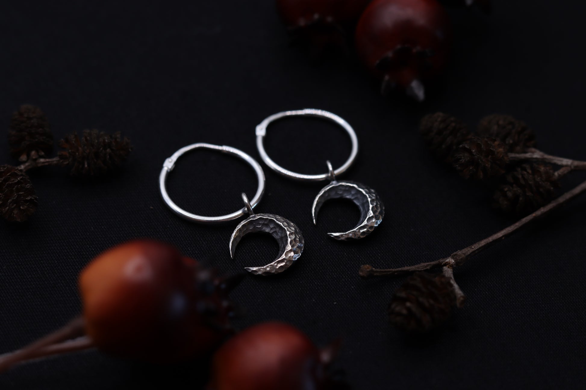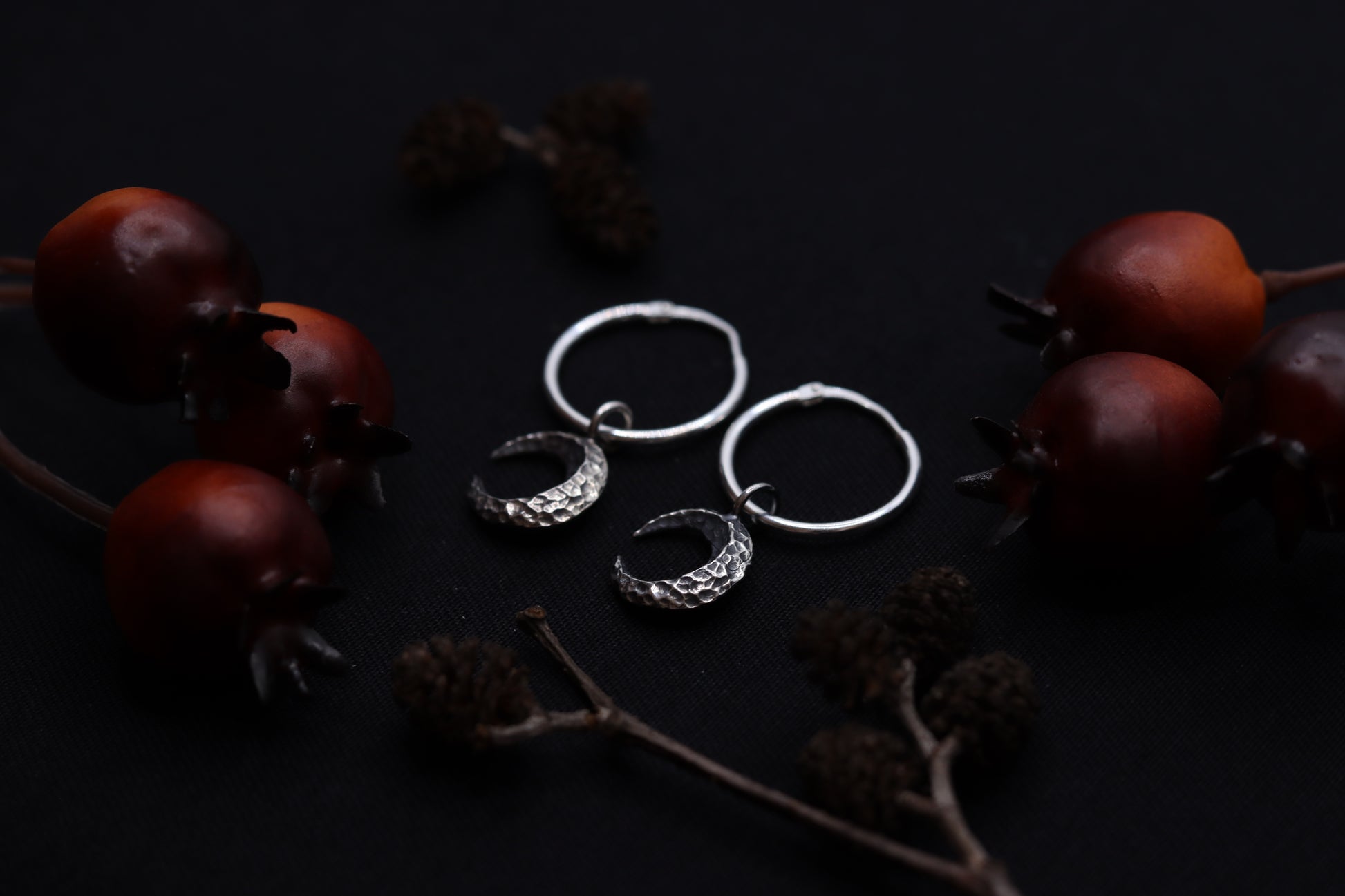 A delicate silver moon pendant, capturing the night's serene essence. Whether you're dancing beneath the stars or lost in twilight thoughts, it's a touch of celestial wonder.
