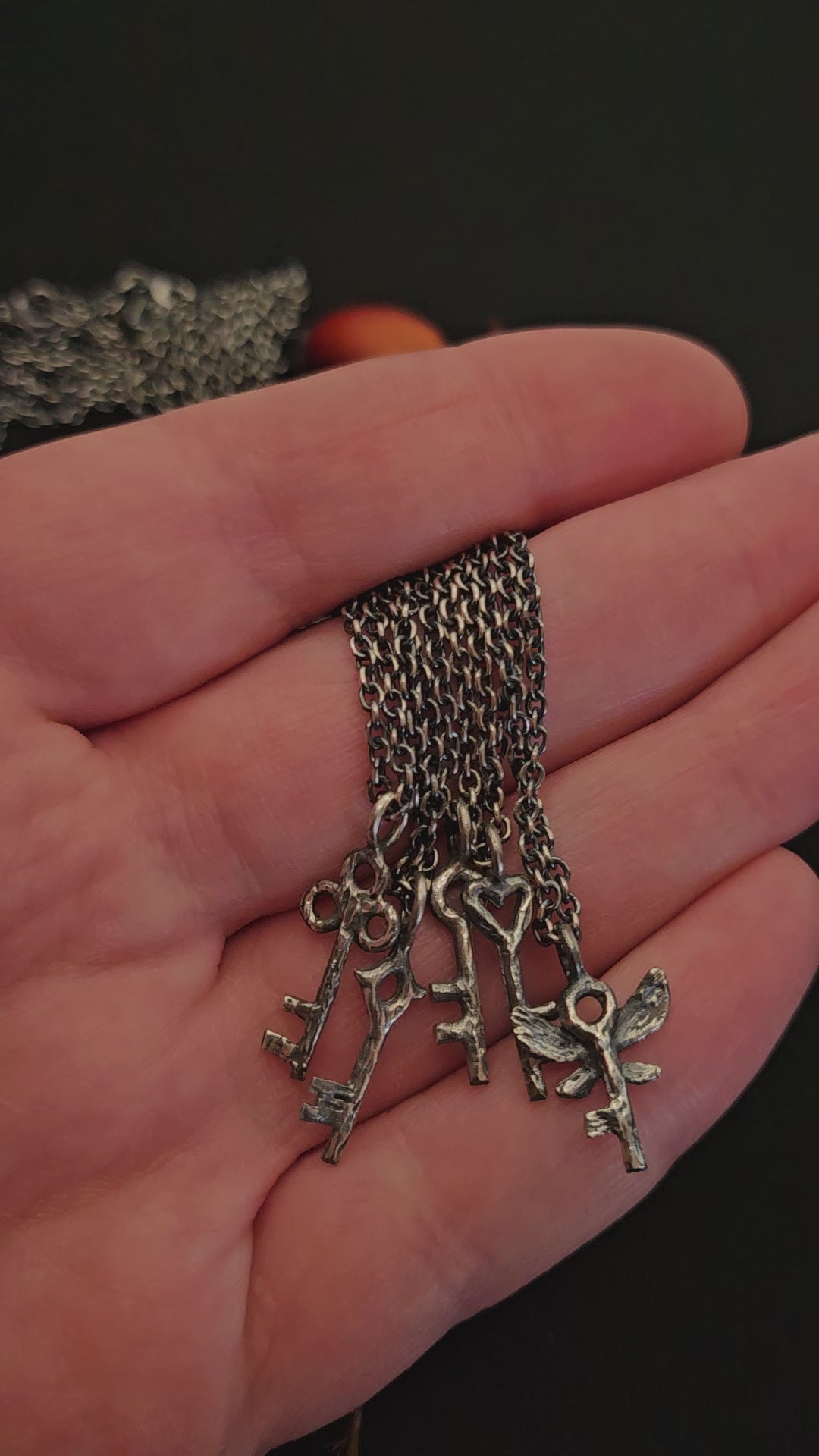 A dainty, rustic, hand-crafted, sterling silver key reminiscent of the one used for the jewelry boxes, writing cabinets, doors, and chests of old.