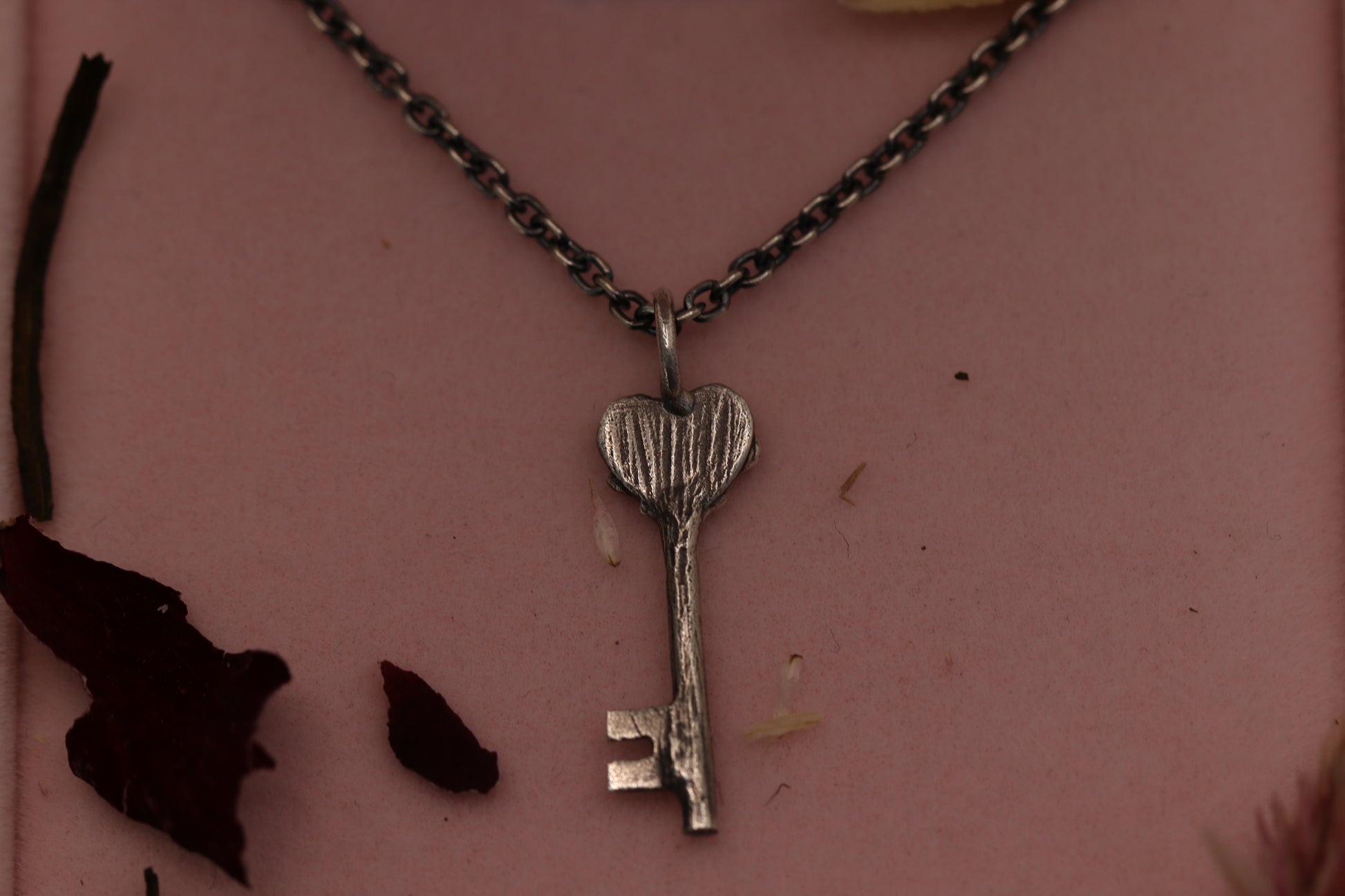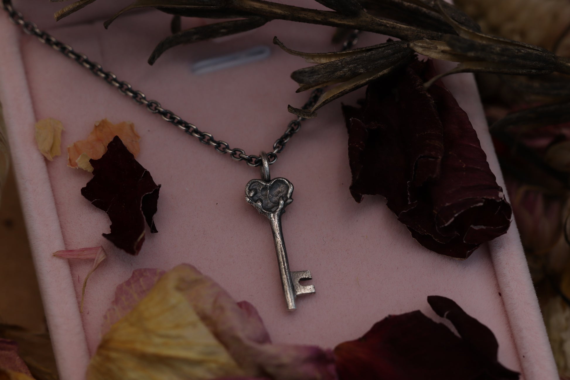 Hand-carved in sterling silver, each creation carries a piece of this enchanted realm. The Secret Key Necklace promises to open unseen doors, the Secret Locket guards the most precious of keepsakes, the Love Potion Pendant holds a spell of devotion, and the Heart Rings intertwine love and destiny in delicate, sculpted silver. Together, they form a collection steeped in wonder-where love is a riddle, and the key to its secret is yours to hold.