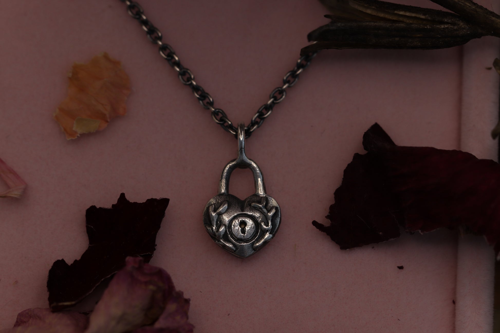 Hand-carved in sterling silver, each creation carries a piece of this enchanted realm. The Secret Key Necklace promises to open unseen doors, the Secret Locket guards the most precious of keepsakes, the Love Potion Pendant holds a spell of devotion, and the Heart Rings intertwine love and destiny in delicate, sculpted silver. Together, they form a collection steeped in wonder-where love is a riddle, and the key to its secret is yours to hold.
