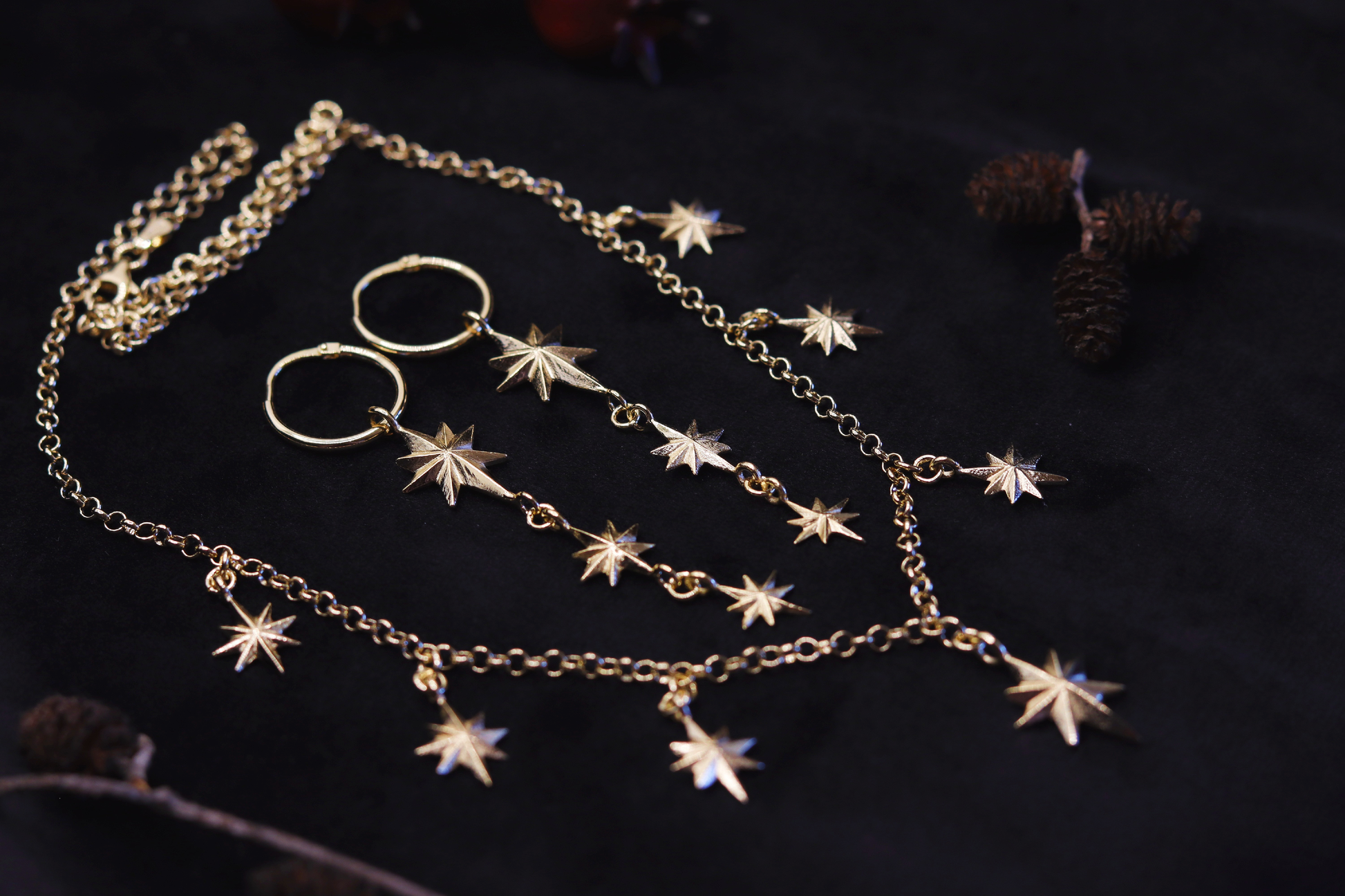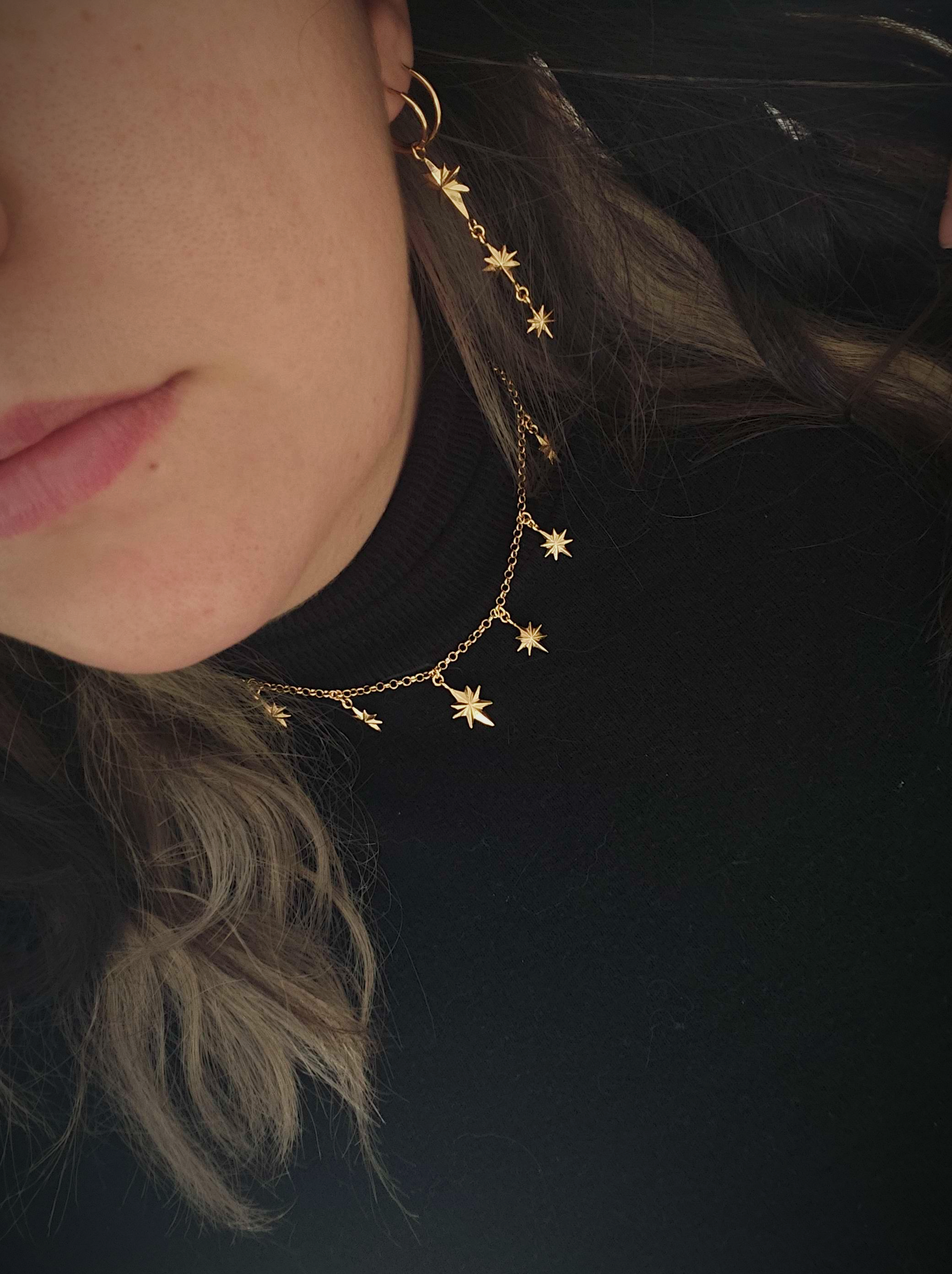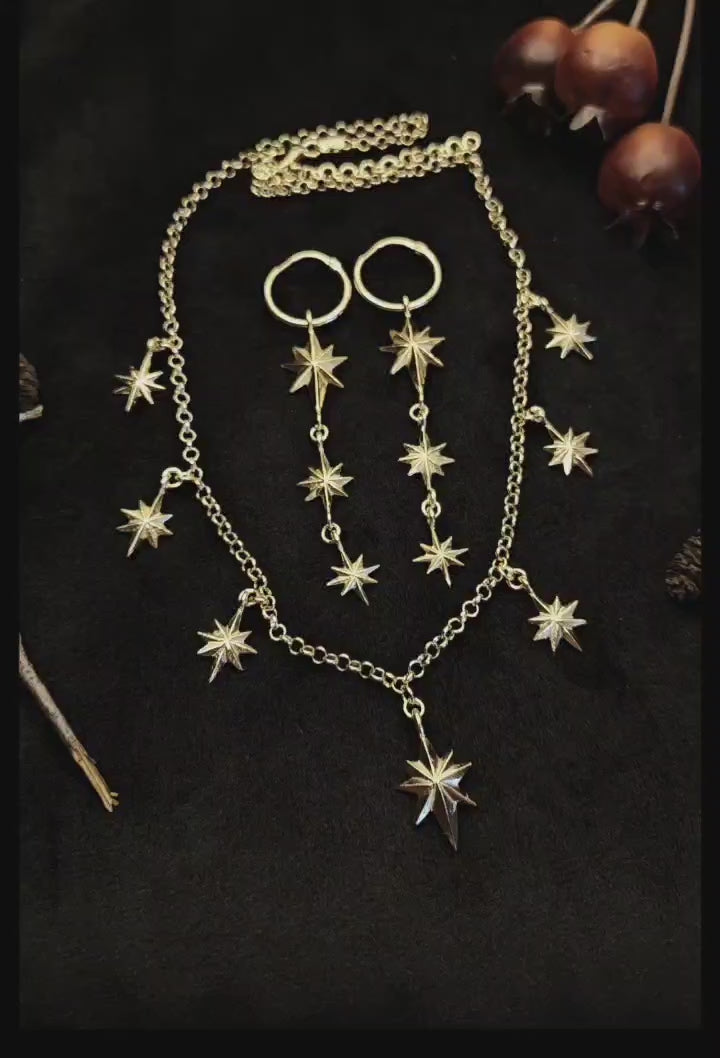 Embark on a celestial journey with our Starry Night gold plated necklaces and earrings. Crafted with exquisite detail, each pendant captures the ethereal beauty of a night sky filled with shimmering stars and mystical constellations. Let the Starry Night collection transport you to a realm of dreams and imagination, where the beauty of the universe is yours to behold. ✨